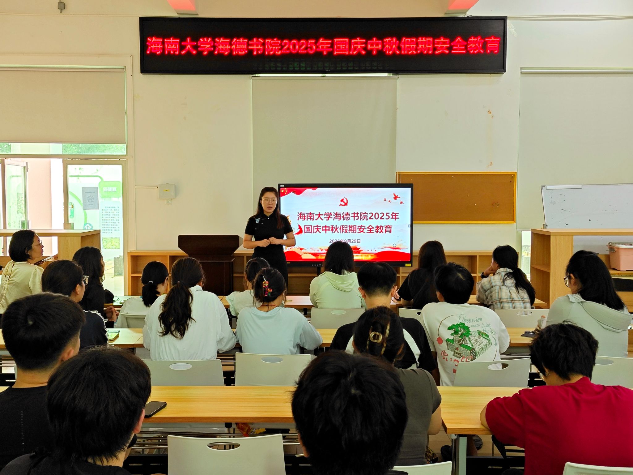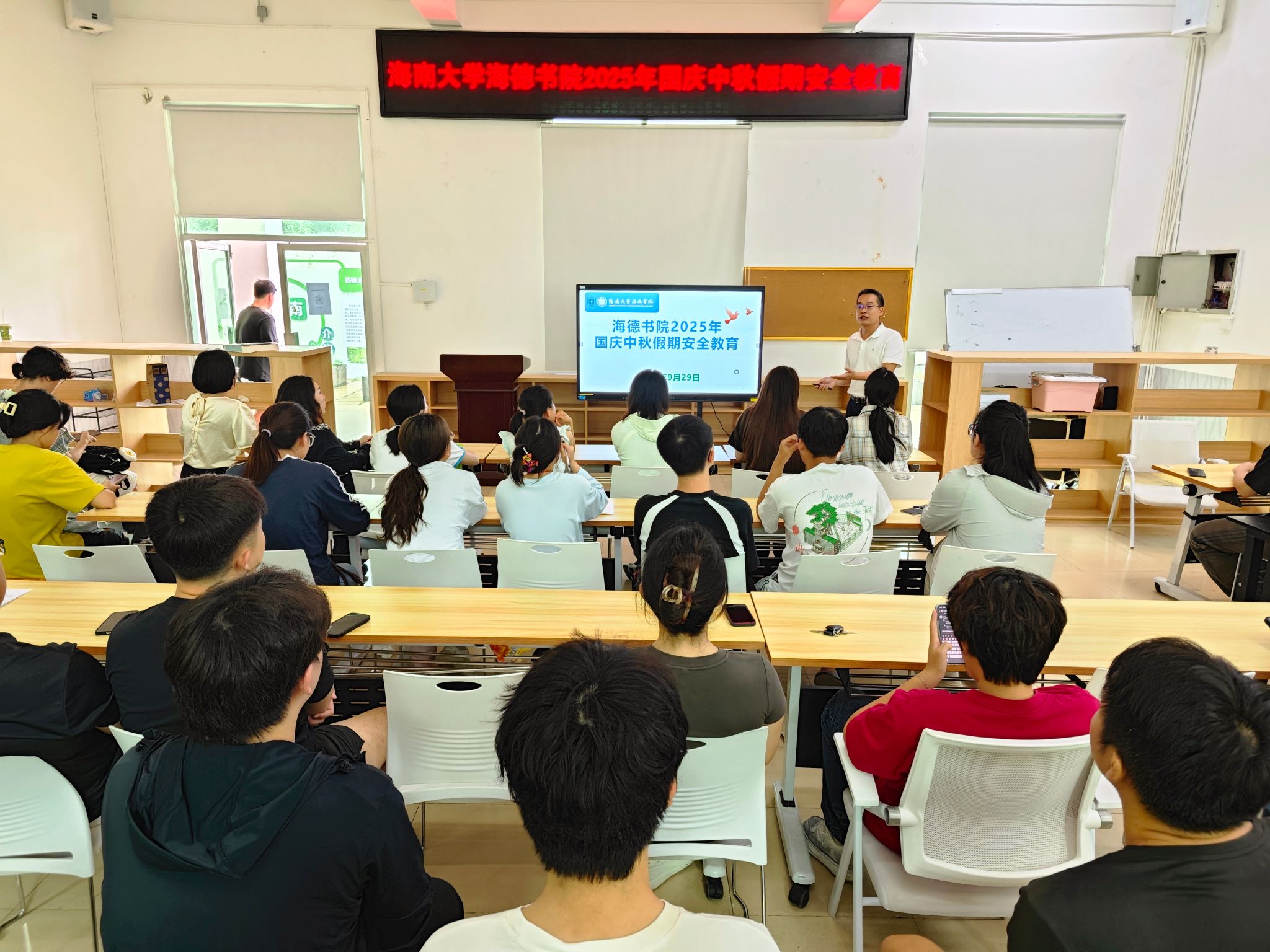为深入贯彻落实习近平总书记关于安全生产重要指示批示精神及学校相关工作部署,切实筑牢国庆假期学生安全防线,保障全校学生生命财产安全与校园稳定,2025年9月29日,海德书院在12号楼二楼共享空间召开2025年国庆假期学生安全工作会议暨安全教育主题班会。韩胜丁书记出席会议,全体辅导员、宿班班长参会。