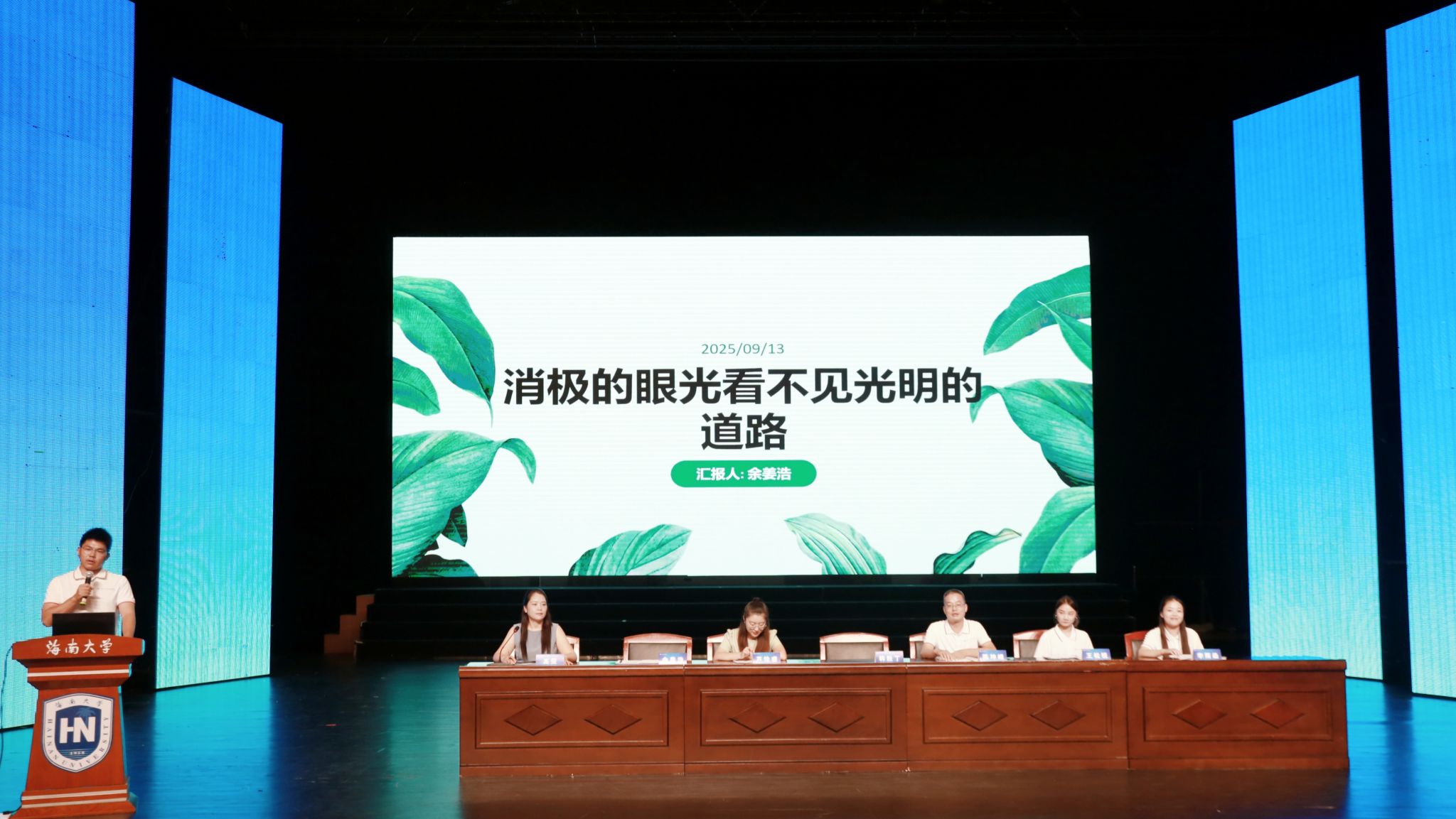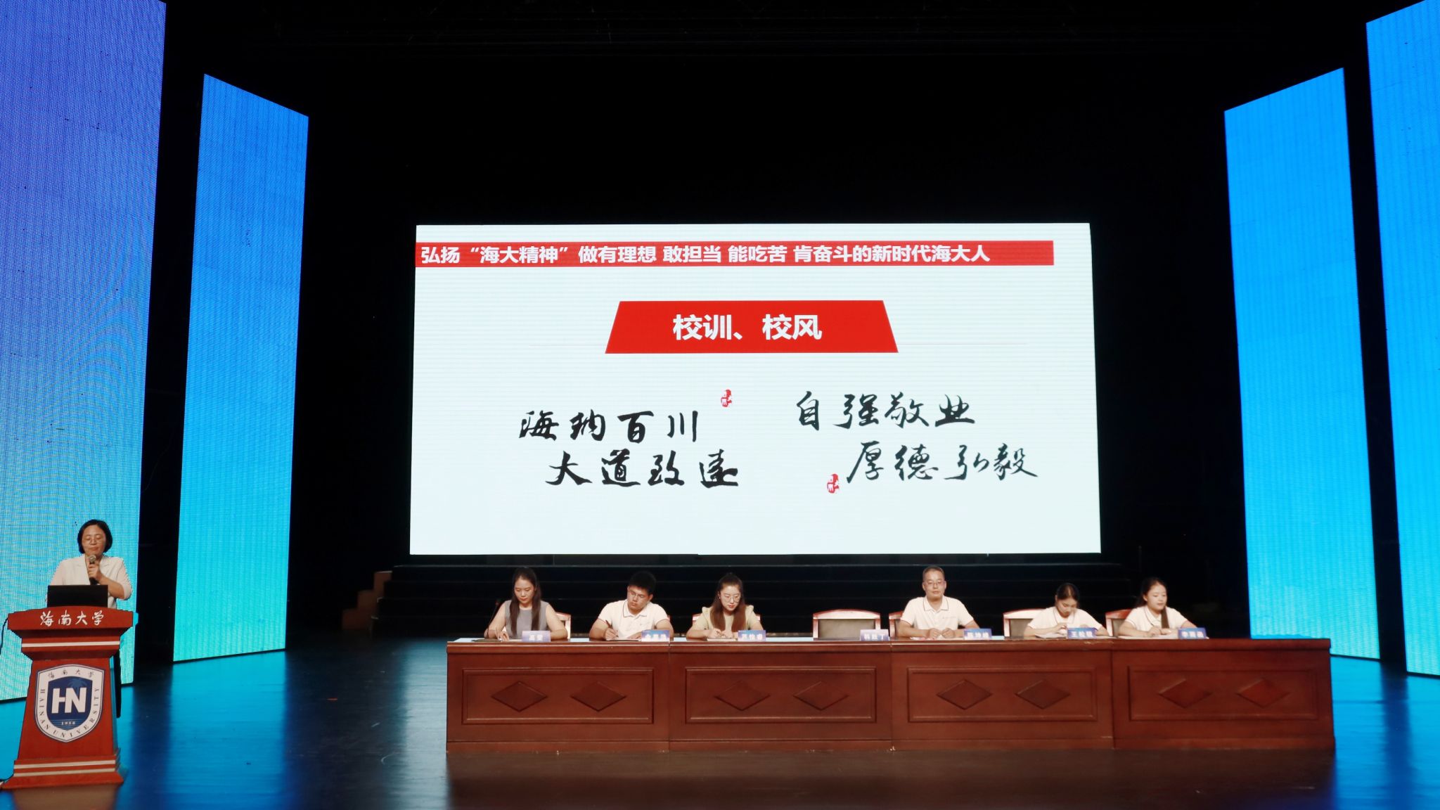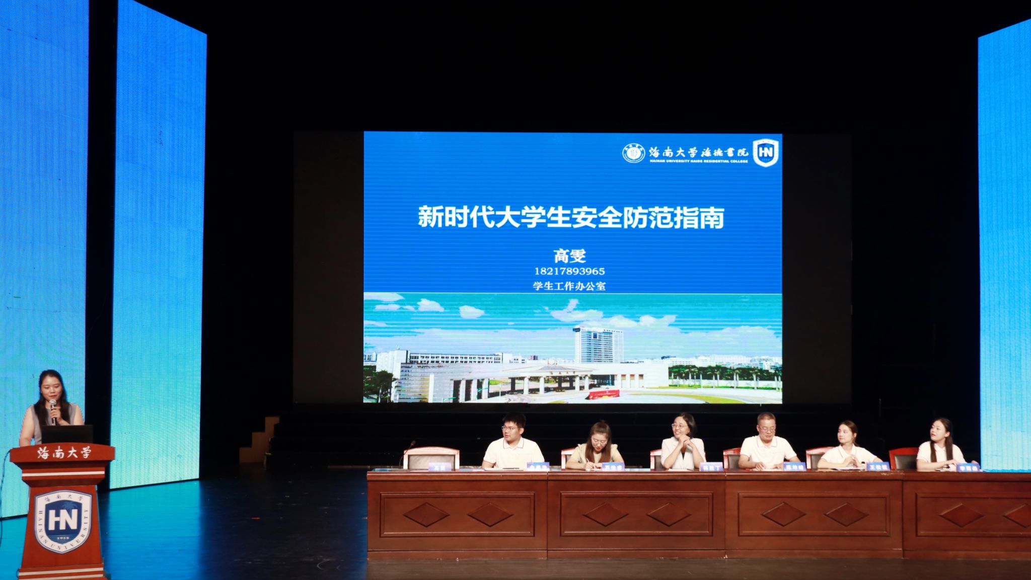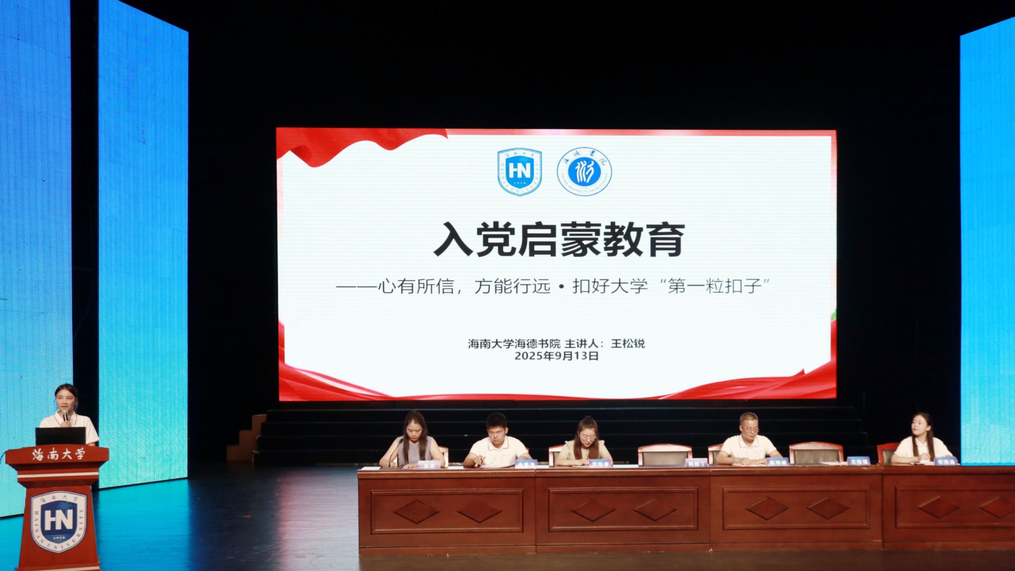 9月13日晚,海南大学海德书院2025级新生见面会暨入学教育大会在思源大礼堂成功举行。会议旨在帮助新生快速适应校园、明确发展方向,完成入校衔接工作。海德书院党委书记韩胜丁,书院辅导员高雯、陈坤峰、芦怡睿、王松锐、余姜浩、李雨函,以及2025级本、硕、博全体新生共同参加本次会议。