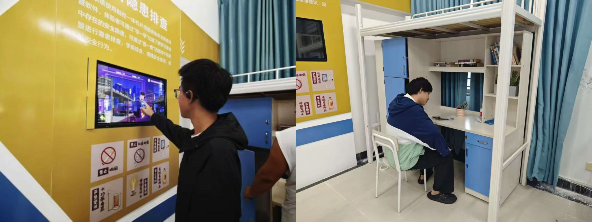 活动依托智能学习系统,覆盖防套代购、消防安全、宿舍安全、电瓶车规范使用及反诈骗等领域,设置了丰富的沉浸式体验项目。3D模拟灭火区,学生亲手操作设备模型,熟练掌握“提、拔、握、压”的操作步骤;宿舍隐患排查环节,大家近距离识别违规充电、杂物堆积等潜在风险,直观感受“隐患险于明火”;“套代购”普法专区通过图文展板、真实案例拆解,详细解读离岛免税政策及违规后果;反诈骗专区则以情景模拟、话术辨析等形式,帮助学生认清刷单、借贷等常见诈骗陷阱。