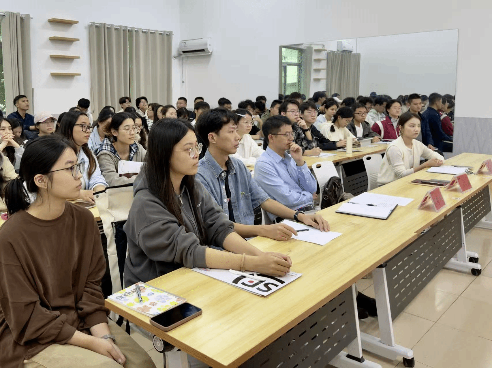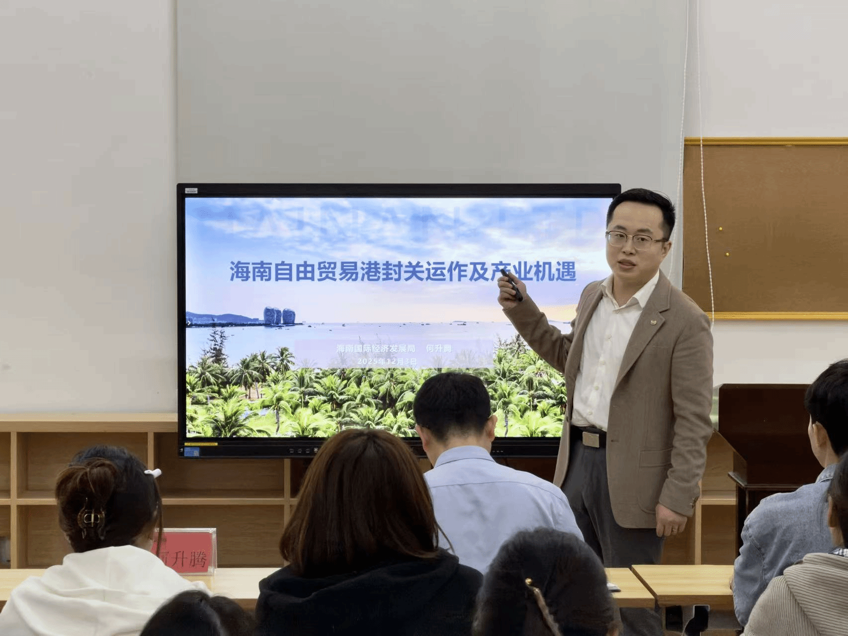 宣讲尾声,何升腾老师向全体学员发出倡议,鼓励大家主动学习政策内涵、做好职业规划,积极参与实习实践,将专业所长与自贸港建设需求结合起来,将个人成长融入国家发展大局,为海南自由贸易港高质量建设贡献青春智慧与力量。