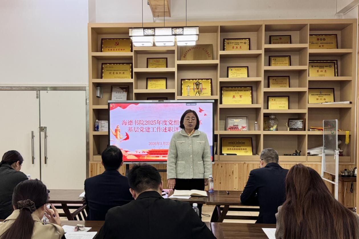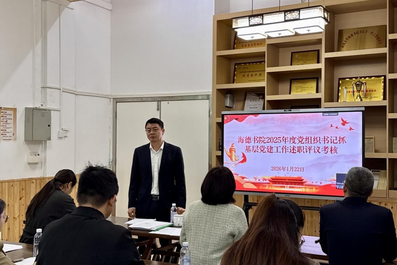 会上,海德书院14个党支部书记依次进行现场述职,围绕成绩清单、问题清单、任务清单三个方面,系统汇报了2025年度工作开展情况,深入分析了存在的问题与不足,并提出了下一步整改思路和具体措施。