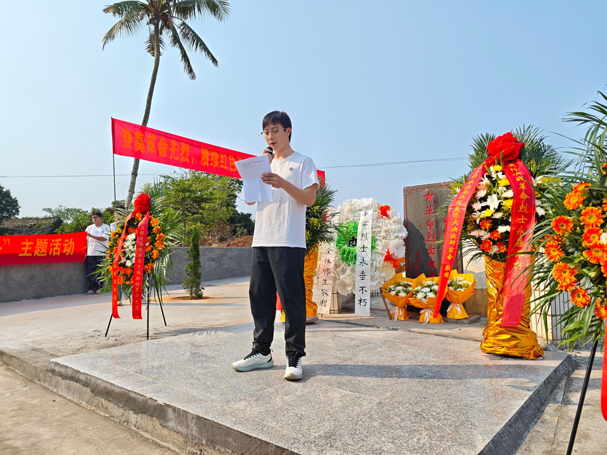 仪式上,海德书院退役大学生党员陈俊作为代表发言,他结合自身在新疆的服役经历,讲述了76年前解放海南岛战役黄竹美亭围歼战的峥嵘历史,缅怀安葬在陵园的100余名英烈用生命守护家国的赤诚初心。他表示,和平来之不易,新时代青年党员更应铭记历史,以青春之我、奋斗之我肩负时代使命,将英烈精神转化为守护和平、建设自贸港的实际行动。