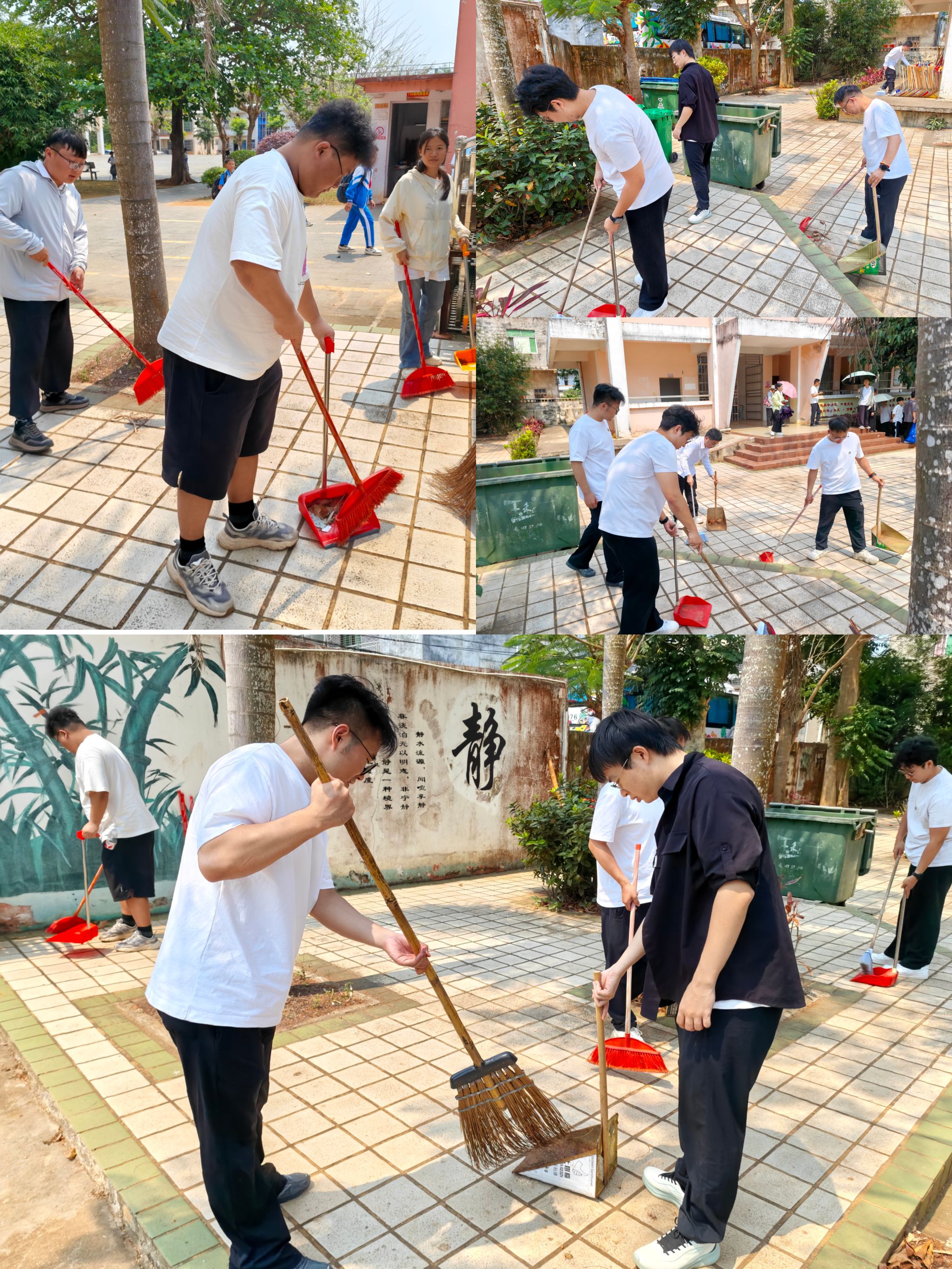 祭奠仪式结束后,海德书院师生代表前往黄竹小学,参与后续校地共建系列活动,清理校园主干道、操场及教室周边垃圾,以志愿行动践行自贸港文明新风,引导孩子们树立环保意识。