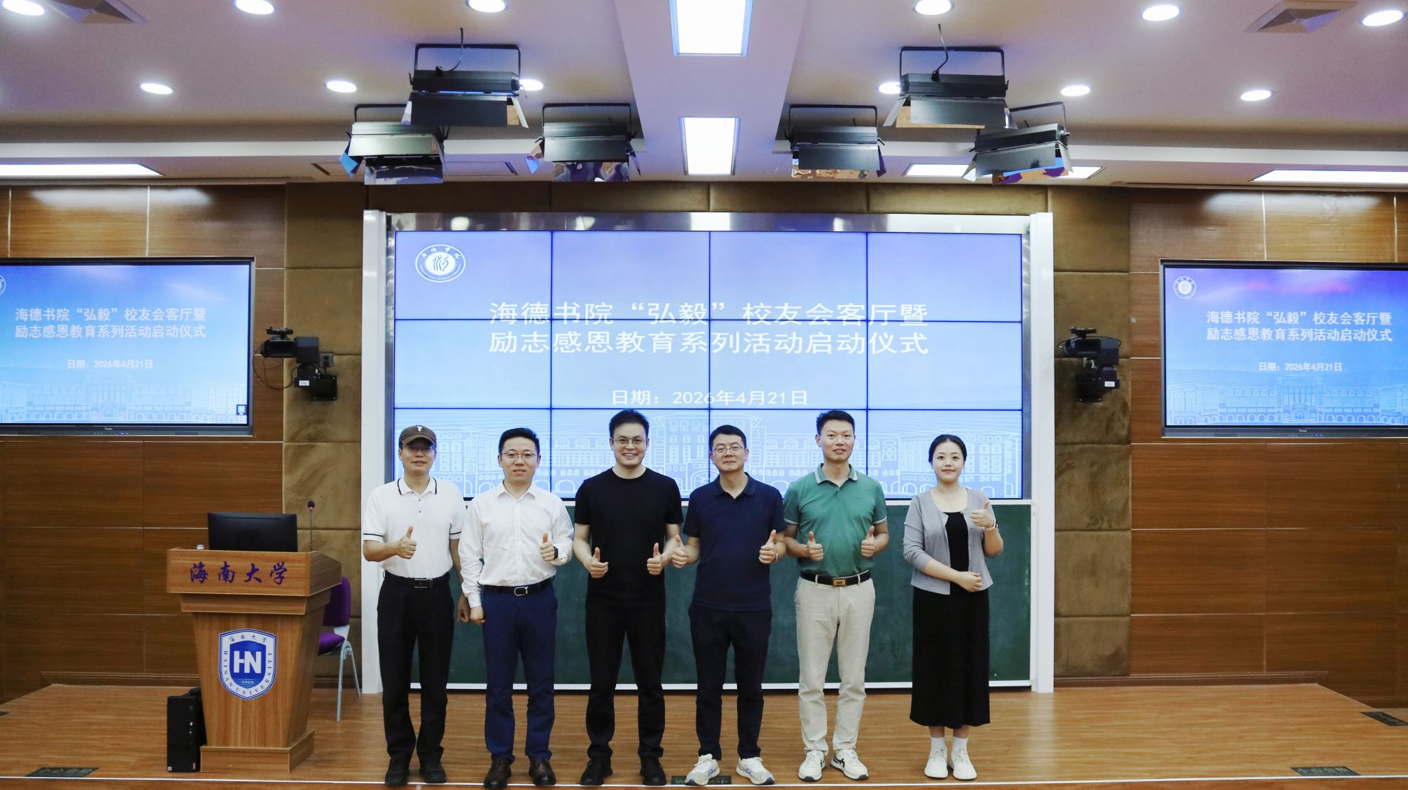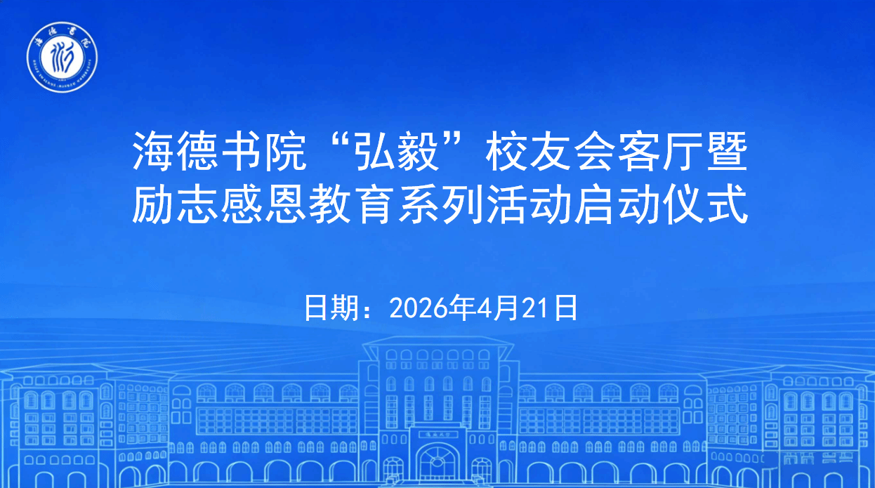 2026年4月21日下午,海德书院“弘毅”校友会客厅暨励志感恩教育系列活动启动仪式在三号教学楼211教室举行。本次活动旨在搭建校友与在校学子的沟通交流桥梁,传承校友励志奋斗精神,扎实推进学生感恩教育工作,助力学子全面成长。