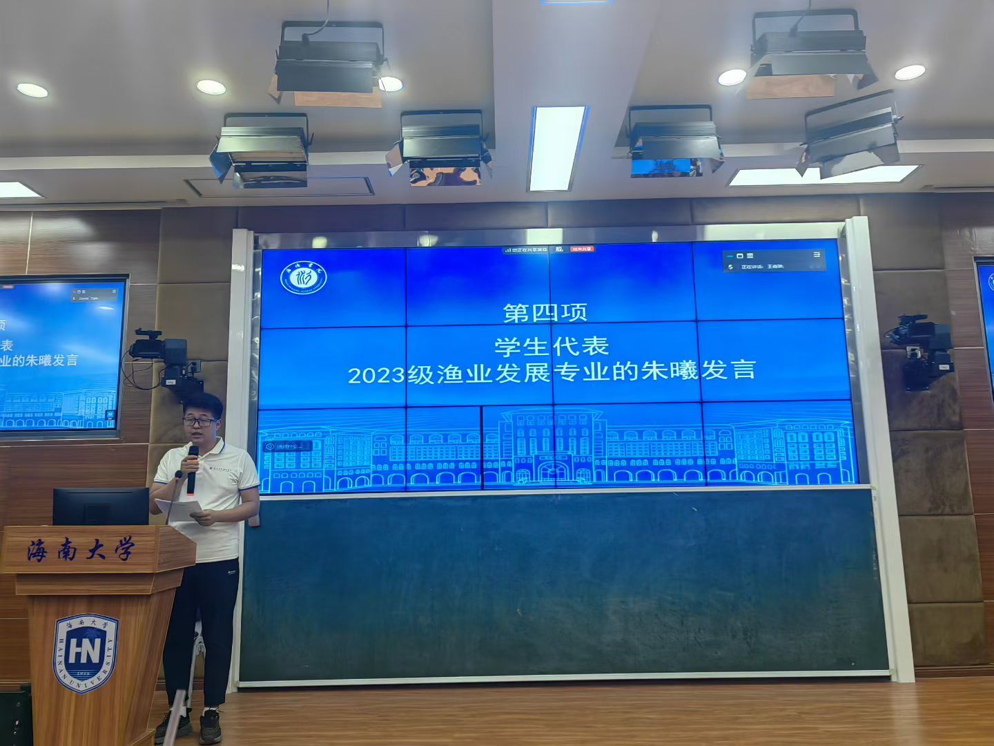 校友分享结束后,2023级渔业发展专业硕士研究生代表朱曦发言,他代表全体参会学子对校友们的倾情分享与殷切关怀表示衷心感谢,并表示将以优秀校友为榜样,勤奋学习、砥砺奋进,努力成长为可堪大用、能担重任的时代新人。