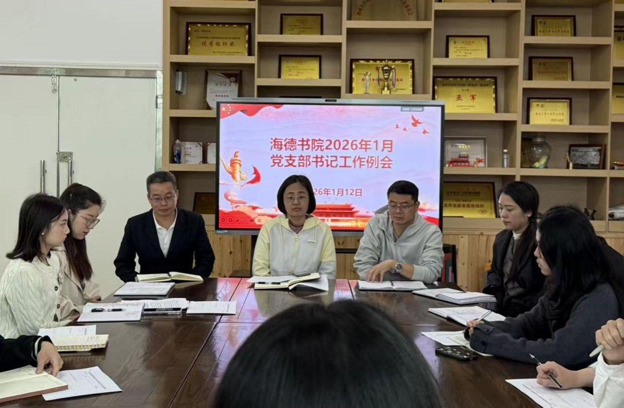 2026年1月12日下午,海南大学海德书院在12号楼1楼会议室召开海德书院党委班子2025年度民主生活会征求意见座谈会暨2026年1月党支部书记工作例会。海德书院党委书记韩胜丁、党委副书记崔建兵、学工办主任高雯、综合办主任陈坤峰,辅导员芦怡睿、王松锐、李雨函、余姜浩,及各党支部书记或支委共20余人参会。
