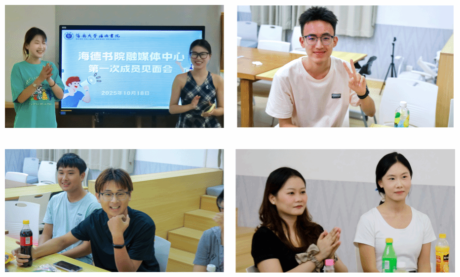 10月18日傍晚,海南大学海德书院融媒体中心在12栋二楼共享空间举办2025-2026年度成员见面会。本次见面会以促进新老成员交流、增强团队凝聚力为目的,为新学年工作的开展奠定良好基础。